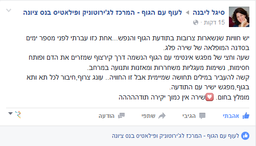 מאמנת אנשים רבים הסובלים מכאבי גב ופריצות דיסק