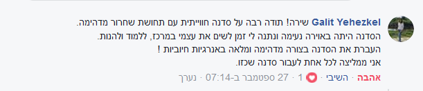 סדנה שכולה התחדשות, ניקויי, ורעננות מפתיעה, כמו שמזמן לא הרגשת.