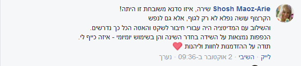 איריס מספרת על החוויה מהסדנה: